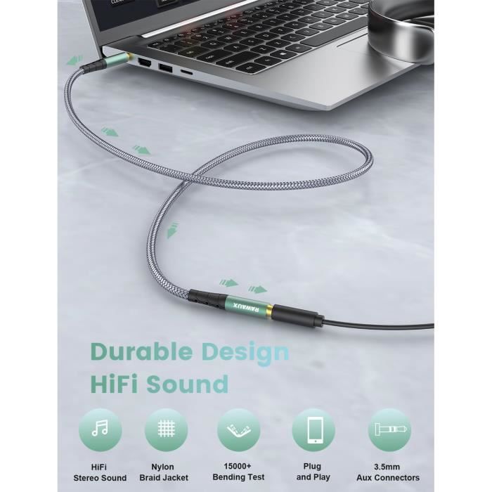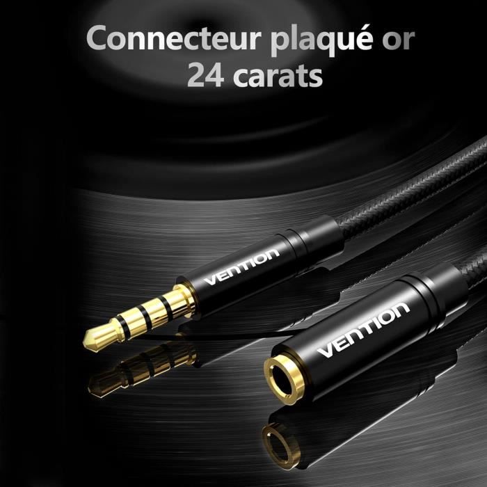 iPhone 6S Plus / 6 / 5S / SE; MacBook Pro, MacBook Air, MacBook, iMac, iPad, iPod Touch Honor 50 Lite/ 30i/ 30 Youth/ 20 Lite/ Honor 10/ Honor 9/ Honor 8/ 8X / Y7, etc. Câble Nylon Tressé Résistant UGREEN Câble Audio Rallonge Audio Câble D'Extension Mâle Vers Femelle 3 Connecteur Audio Universel [ Facile à Utiliser ] Utilisation très pratique, pas besoin d'enlever la coque de protection de vos téléphones ou tablettes. Fonction Multiple ] Cette rallonge jack 3.5mm permet de rallonger un micro-casque sur une manette de console de jeux, est compatible avec PS5/ PS4/ PC portable/ Switch, vous pouvez jouer à distance raisonnable avec un casque gaming pour utiliser la fonction Audio et le Micro [ Large Compatibilité ] Ce câble jack mâle femelle est conçu pour les appareils dotés d'un port standard de 3., 5 mm, compatible avec PS5, casque, écouteur, chaîne Hi-Fi, TV, haut-parleur, lecteur MP3, autoradio, ordinateur portable/ fixe, etc. Microsoft Surface Pro, Chromebook Note : Il ne prend pas en charge le microphone du casque. Cable Jack Male Femelle Rallonge Audio UGREEN 3.5mm 3m - Jack Mâle Femelle Pour Casque Et Enceintes Rallonge Casque Stéréo 3m L'embout en aluminium bleu résiste à la chaleur et à la corrosion. [ Plus Pratique ] La rallonge jack audio mâle femelle peut rallonger le câble de 3., 5 mm, vous n'avez pas besoin de remplacer le casque, ce qui résout le problème du fait que le cordon du casque n'est pas assez long. Huawei P40 Lite/ P30/ P30 Lite/ P20 Lite/ P10/ P10 Lite/P9/ P8/ P Smart/ Mate 40/ Mate 30/ Mate 20/ Mate 20 Lite/ Mate 10/ Mate 10 Lite/ Mate 9 [ Résistant et Durable ] Cette rallonge audio stéréo supporte jusqu'à 10 000 insertions et flexions. Compatibilité Universelle ( Liste Non Exhaustive ) Le câble jack mâle à femelle est compatible avec tous les appareils numériques avec prise audio standard de 3., 5 mm, tel que : Téléphone, PC, tablette, ordinateur portable, casque, écouteur, enceinte, TV, haut-parleur, amplificateur, voiture, chaîne Hi-Fi, autoradio, barre de son, Bose, Beats, lecteur MP3, MP4, DVD, CD, Xbox, PS5 et PS4, etc. [ Qualité Sonore Pure ] Cette rallonge casque audio jack mâle vers femelle est fait de cuivre sans oxygène, fournit la conductivité et la durabilité maximales. Switch Lite, PS4, PS3, Xbox One, LG G5/ G4/ G3 etc. Rallonge Jack Audio en Nylon Tressé Rallonge Casque Audio Jack 3.5mm... Si vous branchez un casque-micro avec cette rallonge, l'audio fonctionne bien, mais le micro ne fonctionne pas.